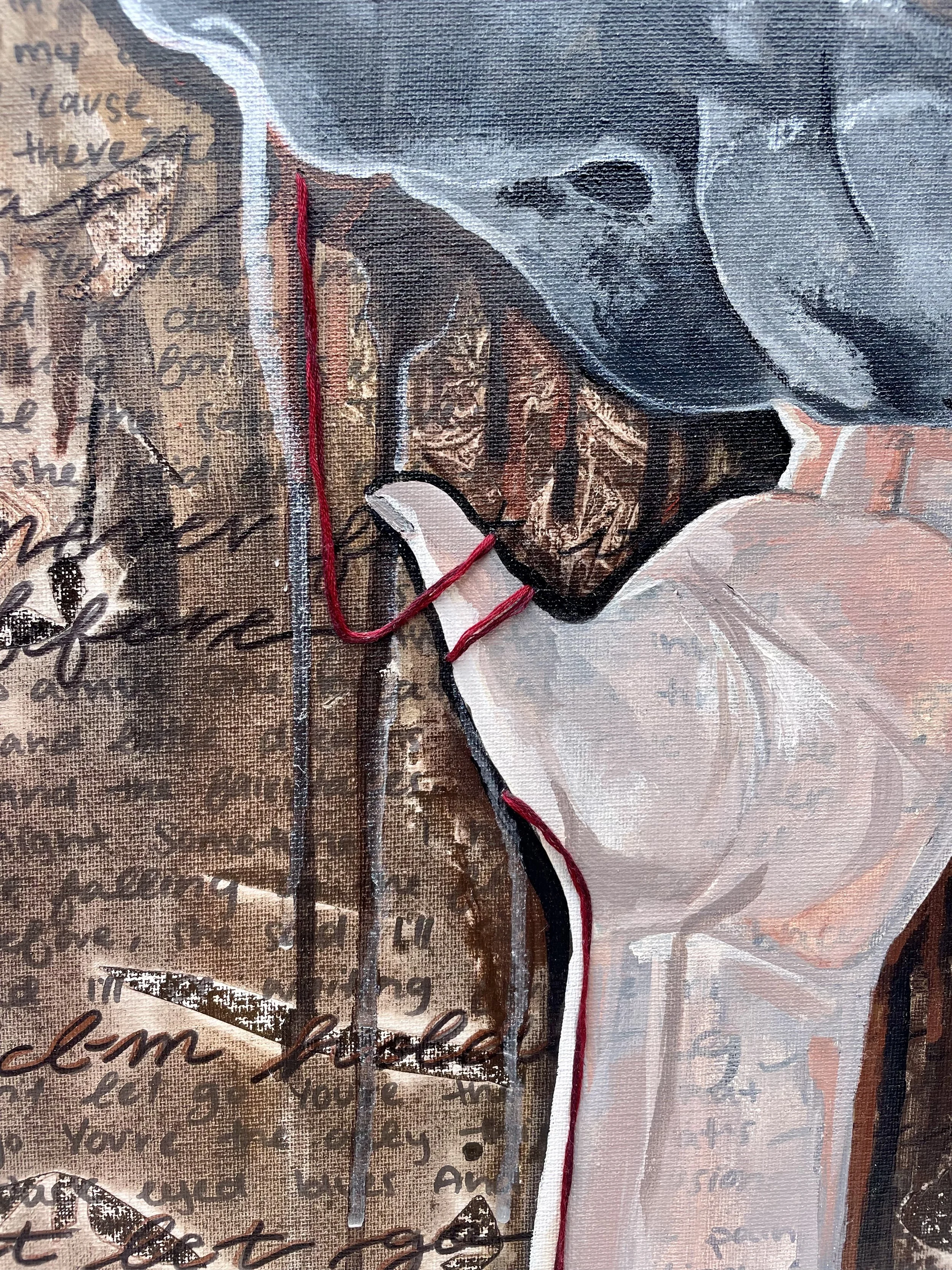 Looking back at the painting you can see a red string looped from the hold to the hand. If you have followed along my artistic journey for long, you may remember my use of a red string throughout my AP portfolio to represent God’s presence/nearness and intended path/purpose. It felt appropriate to bring that back for this piece. Here’s why…